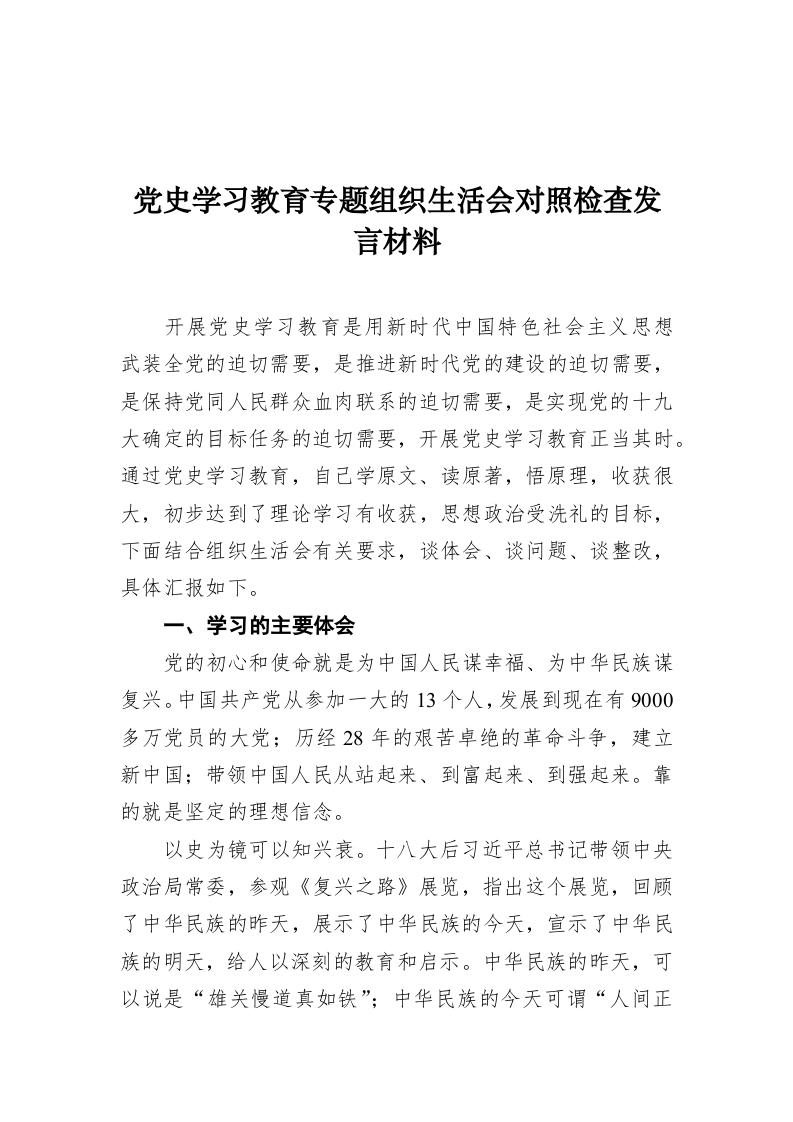 首页讲课讲稿党史学习教育专题组织生活会对照检查发言材料6
