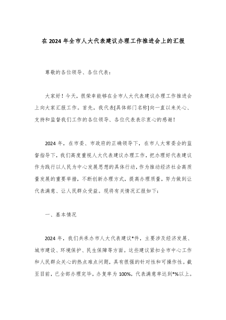 在2024年全市人大代表建议办理工作推进会上的汇报