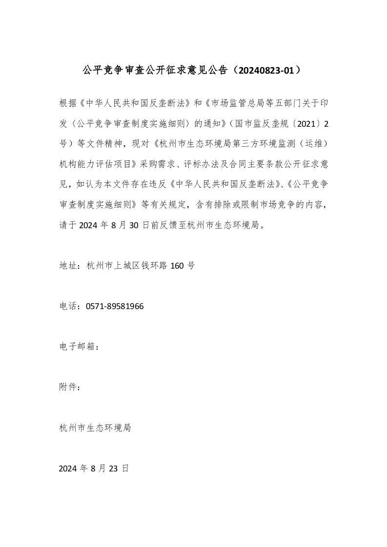 公平竞争审查公开征求意见公告20240823-01