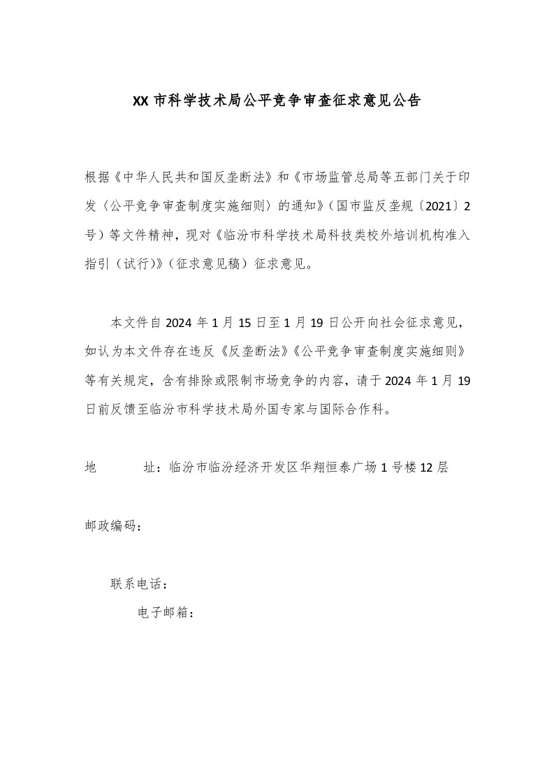 首页精选范文XX市科学技术局公平竞争审查征求意见公告