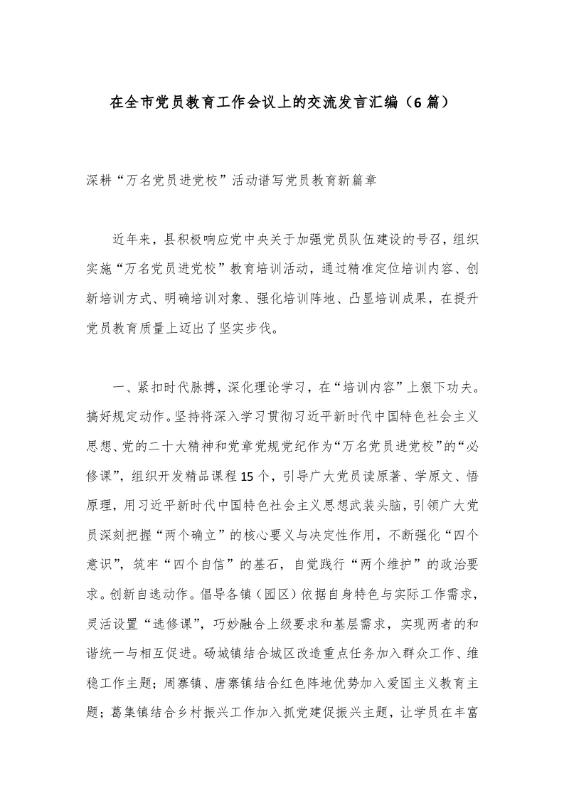 首页精选范文6篇在全市党员教育工作会议上的交流发言汇编