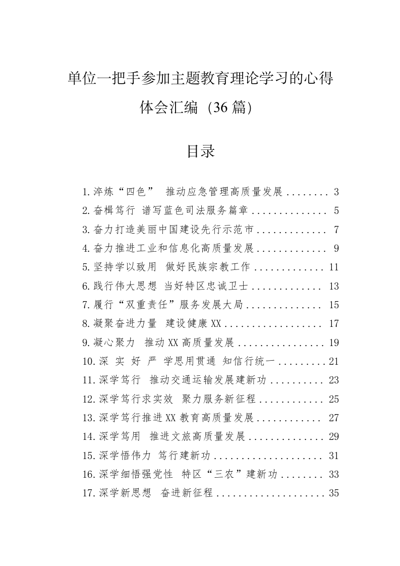 - (36篇)各机关单位一把手参加主题教育理论学习的心得体会汇编