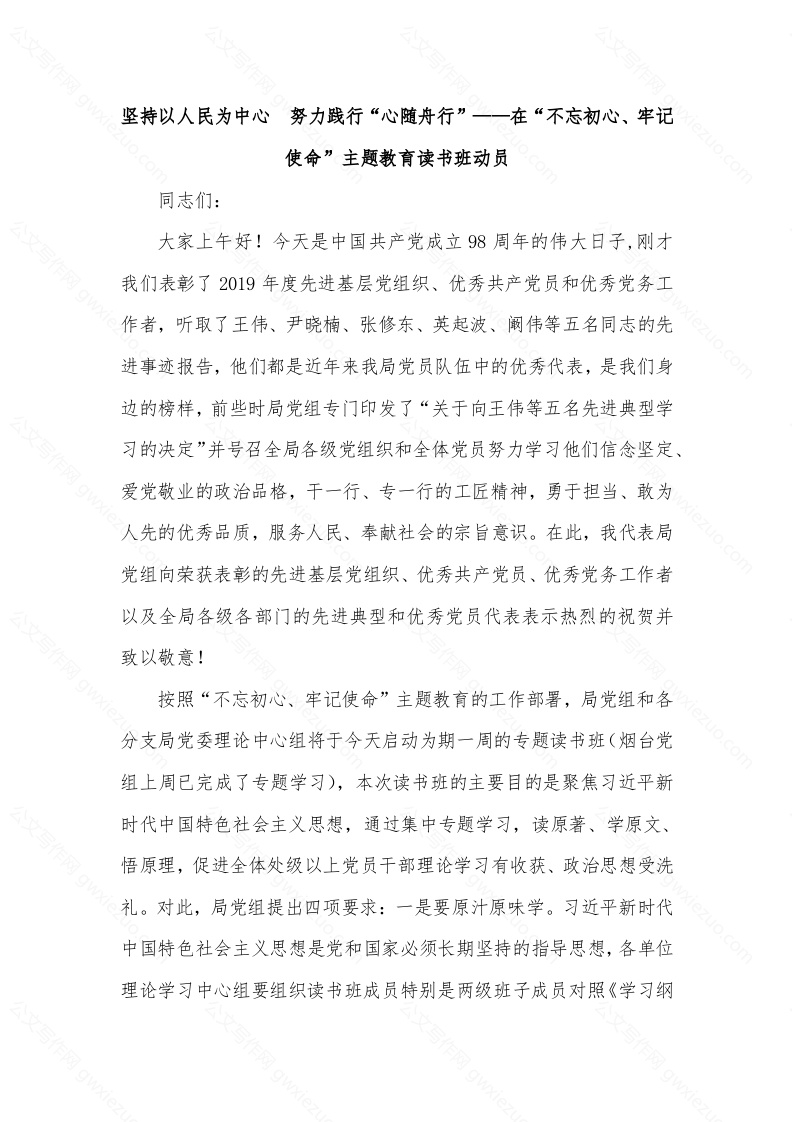 - 扎实开展“不忘初心、牢记使命”主题教育 全面提高工作能力 推动重大任务落实——平台中心党支部在科技部“不忘初心、牢记使命”庆祝建党98周年主题党日活动上的交流发言