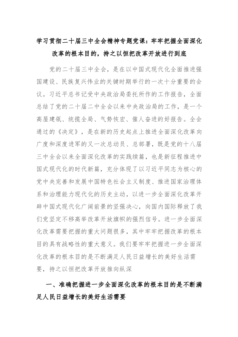 - 学习贯彻二十届三中全会精神专题党课:牢牢把握全面深化改革的根本目的,持之以恒把改革开放进行到底 (1)