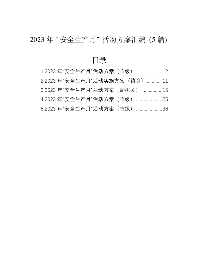 - (5篇)关于2023年“安全生产月”活动方案汇编