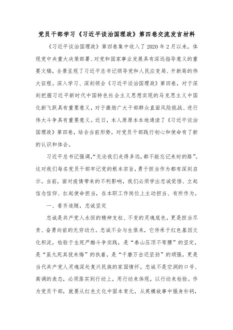 - 机关干部学习《谈治国理政》第四卷交流发言材料