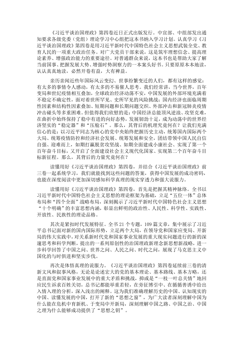 - 学习贯彻《谈治国理政》第四卷研讨发言、心得体会汇编(4篇)