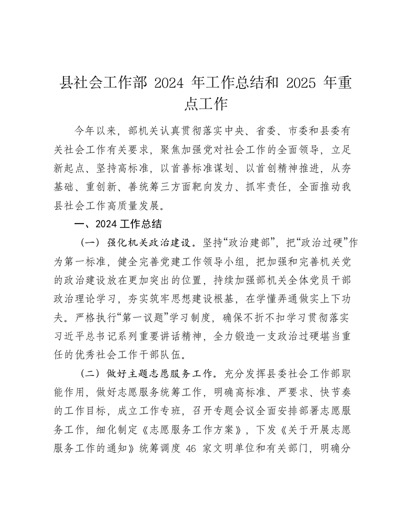 首页学习提升县社会工作部2024年工作总结和2025年重点工作