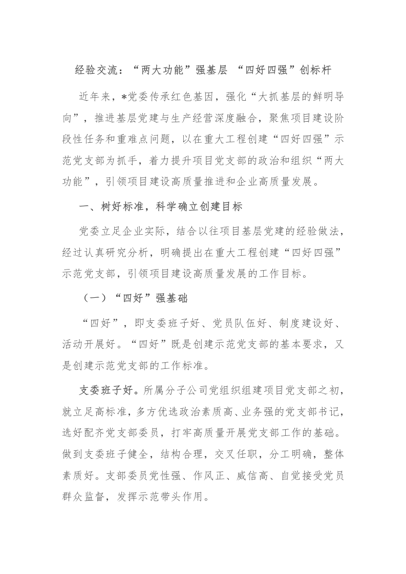 经验交流:“两大功能”强基层 “四好四强”创标杆
