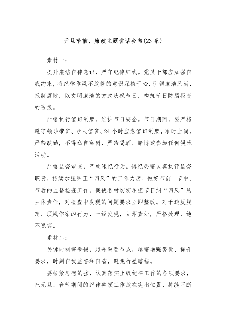 首页每日金句(23条)元旦节前,廉政主题讲话金句
