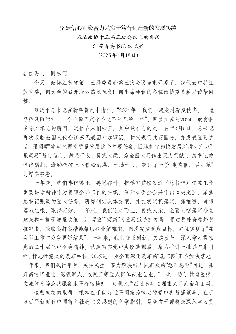 - 最新讲话系列10462江苏省委书记信长星:在省政协十三届二次会议上的讲话