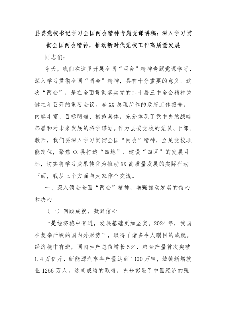 - 深入学习贯彻全国“两会”精神专题党课讲稿