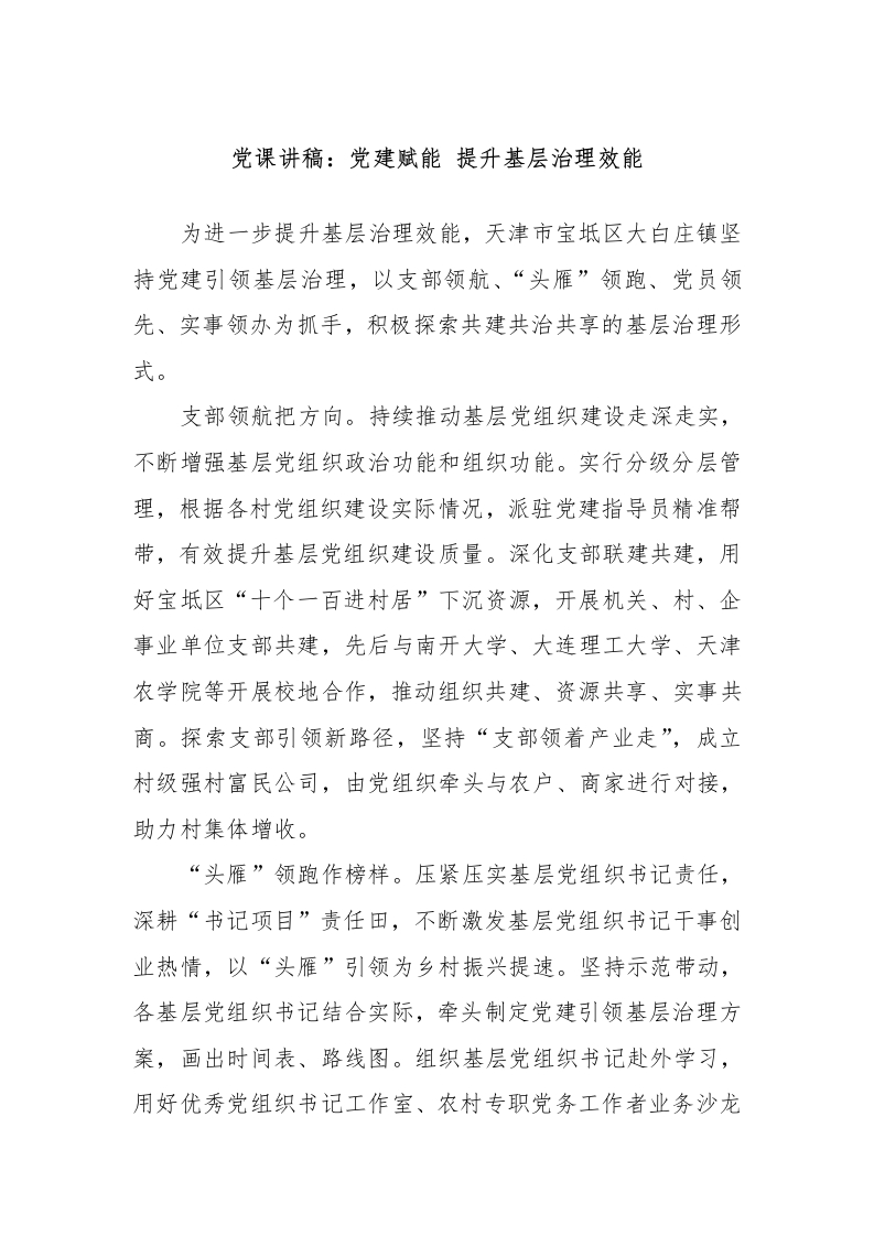首页写作素材党课讲稿:党建赋能 提升基层治理效能