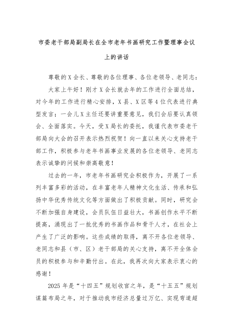 - 在全市老年书画研究会工作暨理事会议上的讲话