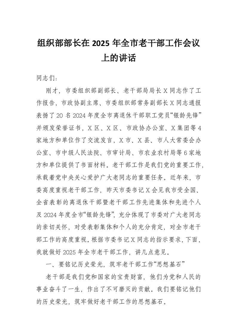 - 县委组织部长在2025年全县组织工作会议暨老干部工作会议上的讲话