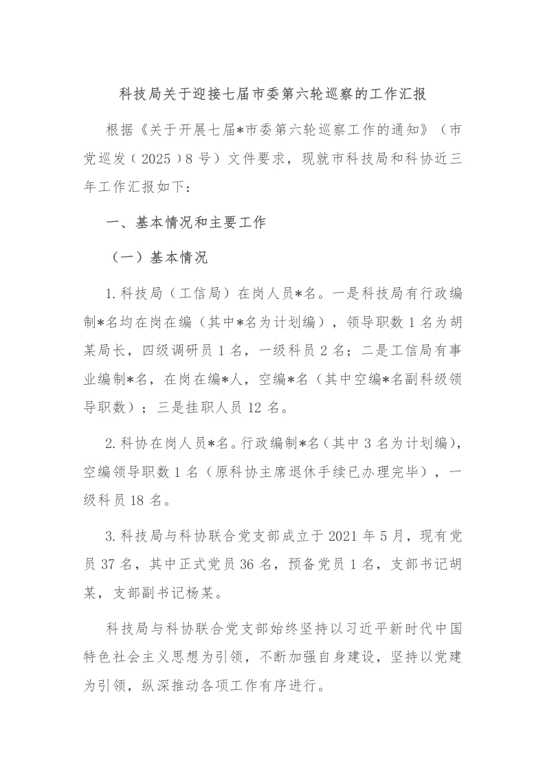 首页写作素材科技局关于迎接七届市委第六轮巡察的工作汇报