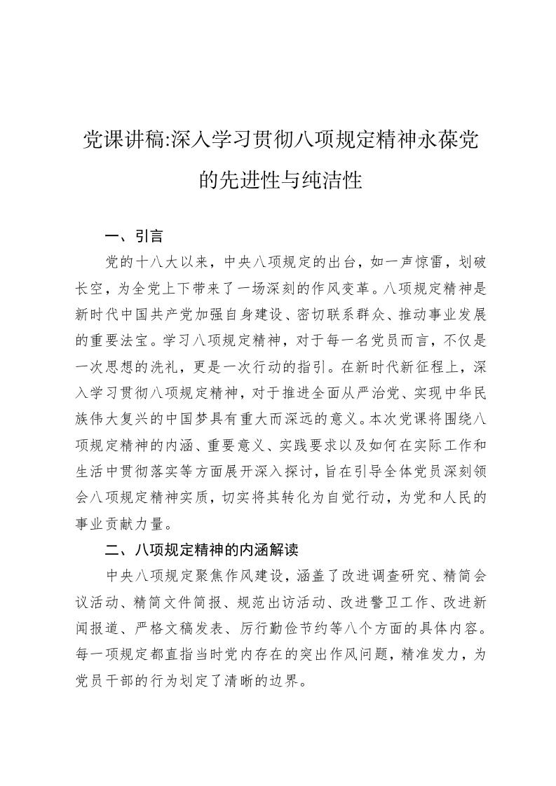 党课讲稿深入学习贯彻八项规定精神永葆党的先进性与纯洁性