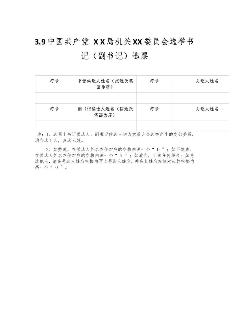 3.9中国*** X X局机关XX委员会选举书记副书记选票