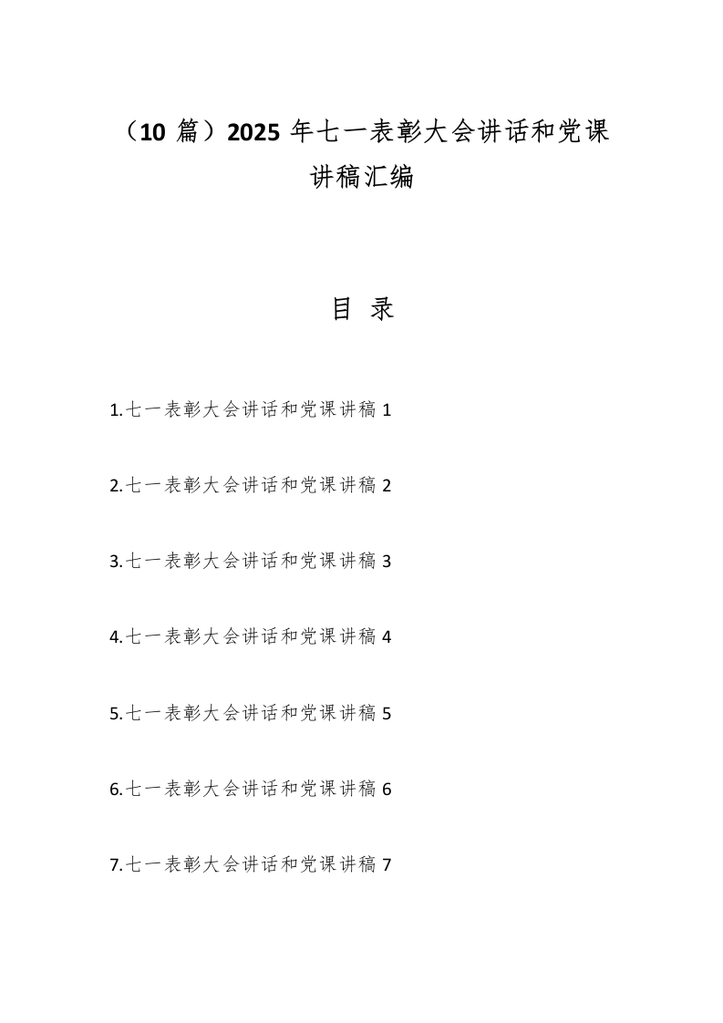 10篇2025年七一表彰大会讲话和党课讲稿汇编