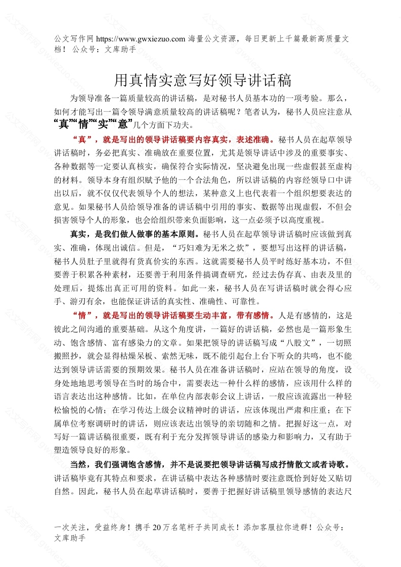 用真情实意写好领导讲话稿