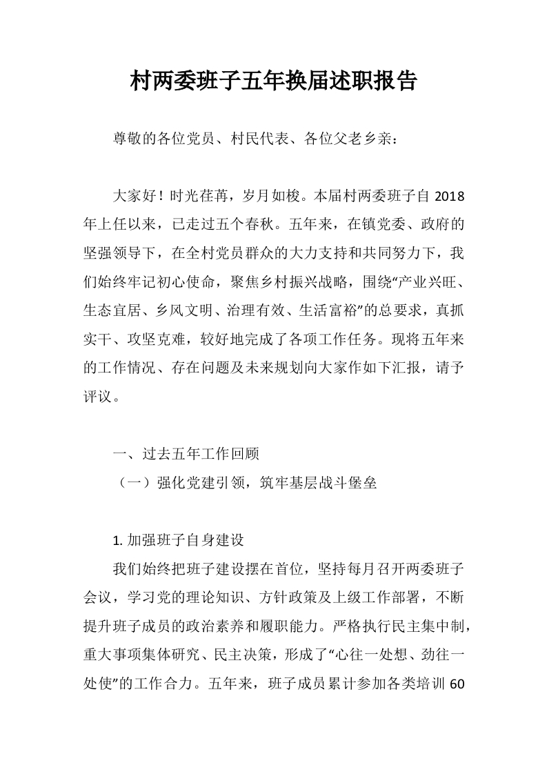 首页讲课讲稿村两委班子五年换届述职报告