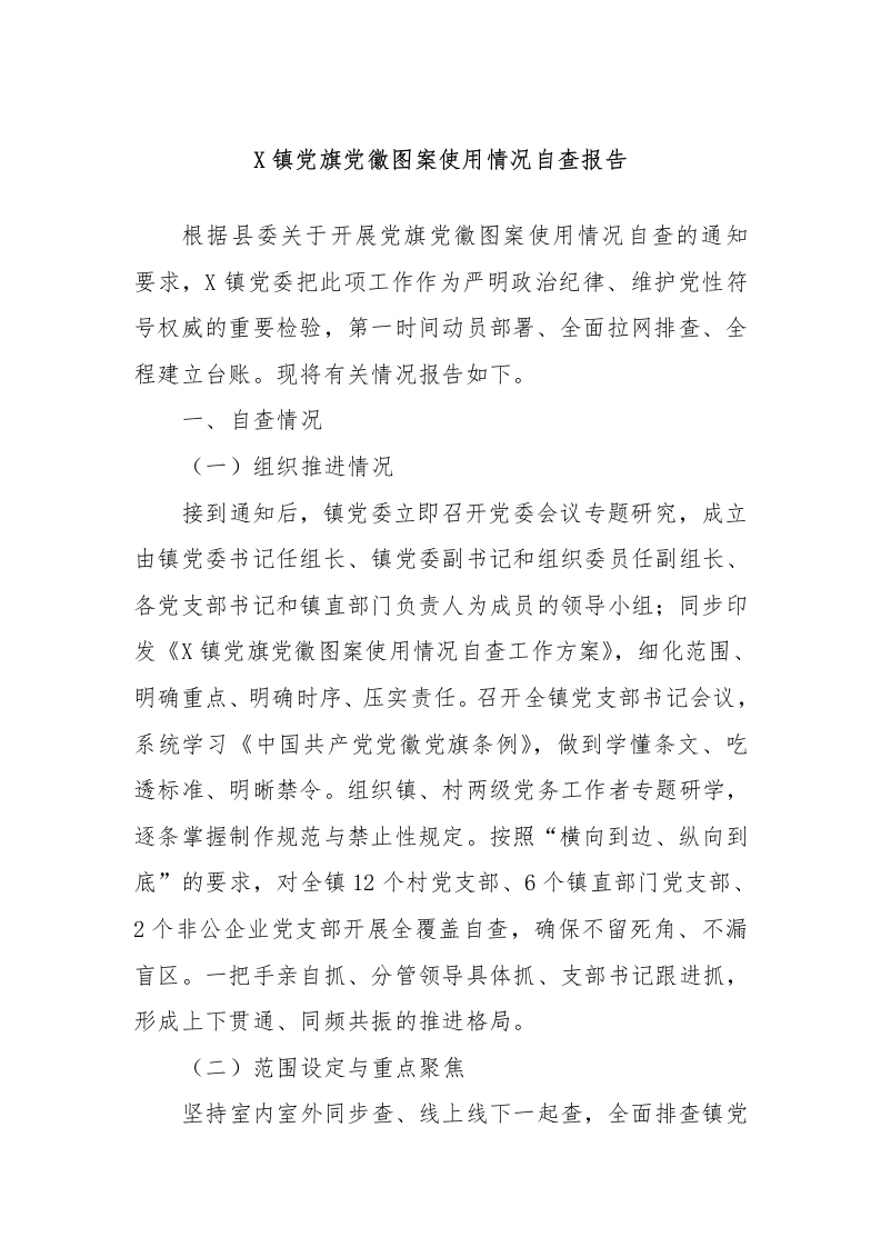 首页讲课讲稿X镇党旗党徽图案使用情况自查报告
