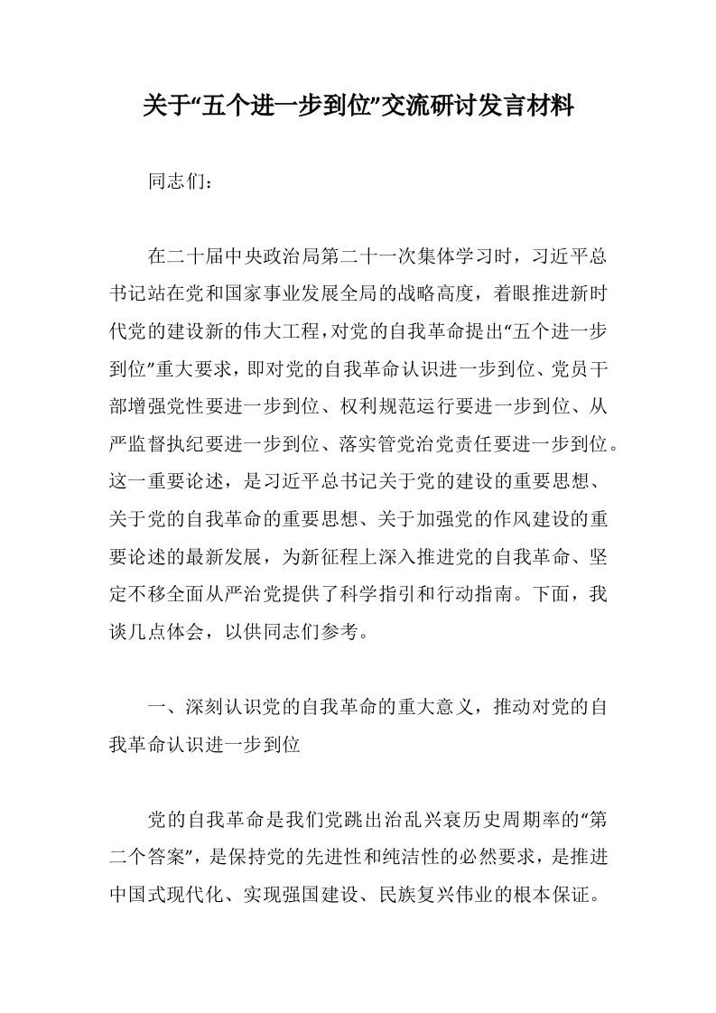 首页讲课讲稿关于“五个进一步到位”交流研讨发言材料