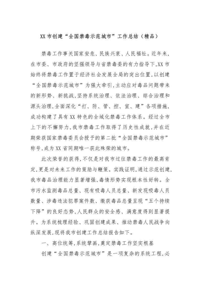 XX市创建“全国禁毒示范城市”工作总结(精品)
