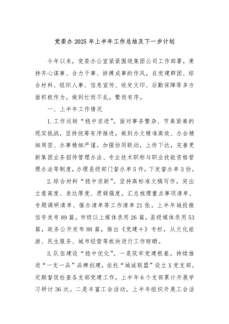 首页讲课讲稿党委办2025年上半年工作总结及下一步计划