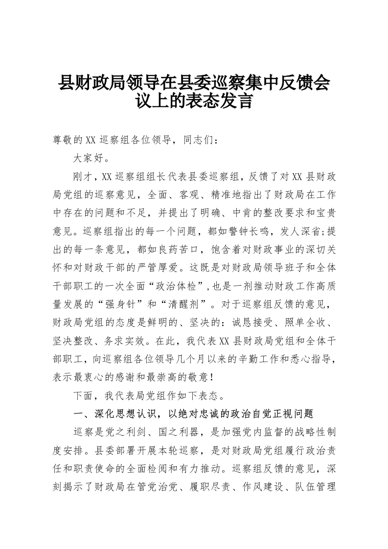 县财政局领导在县委巡察集中反馈会议上的表态发言