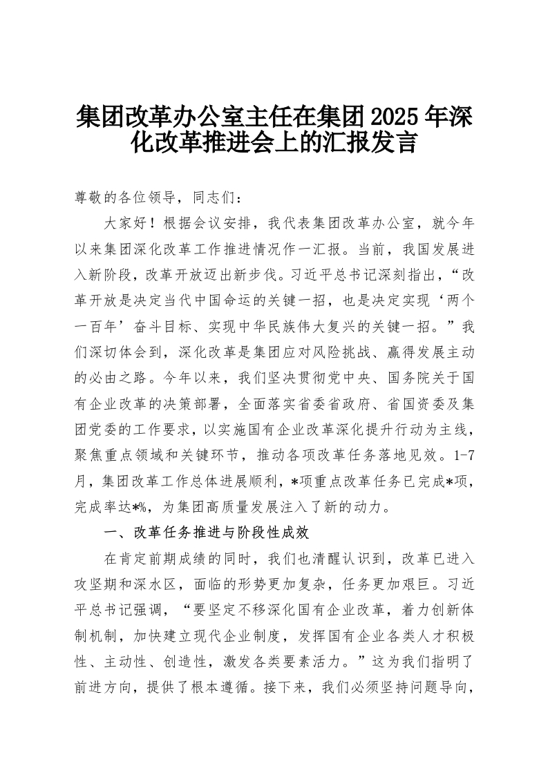 首页讲课讲稿集团改革办公室主任在集团2025年深化改革推进会上的汇报发言