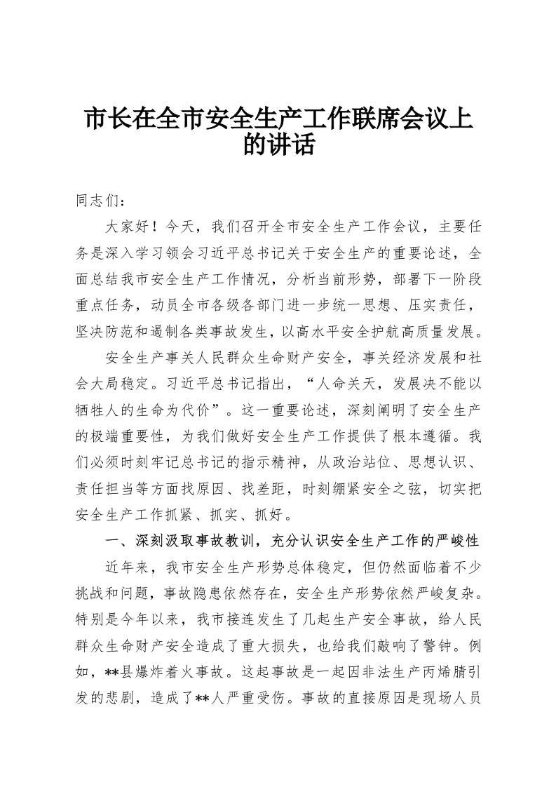 首页讲课讲稿市长在全市安全生产工作联席会议上的讲话