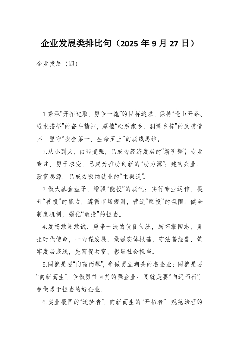 企业发展类排比句(2025年9月27日)