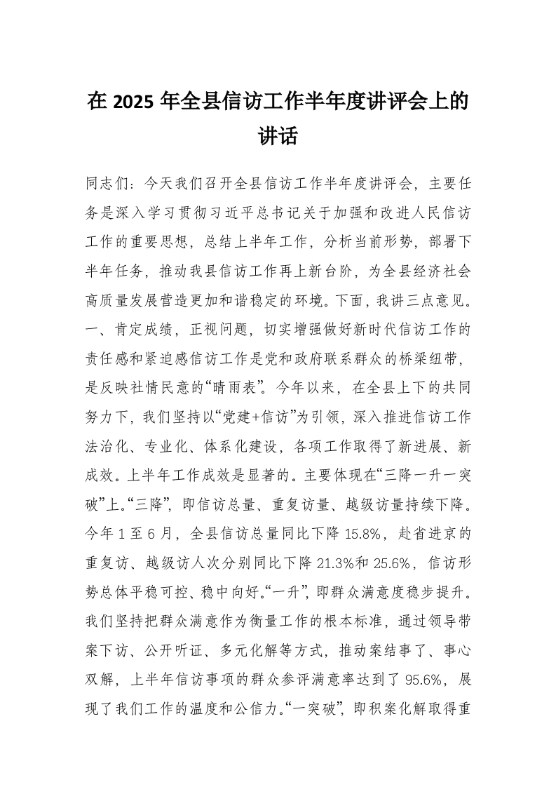 首页讲课讲稿在2025年全县信访工作半年度讲评会上的讲话
