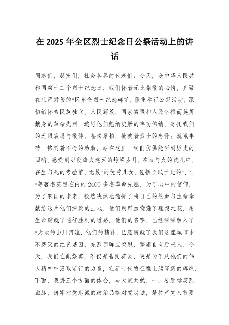 首页讲课讲稿在2025年全区烈士纪念日公祭活动上的讲话