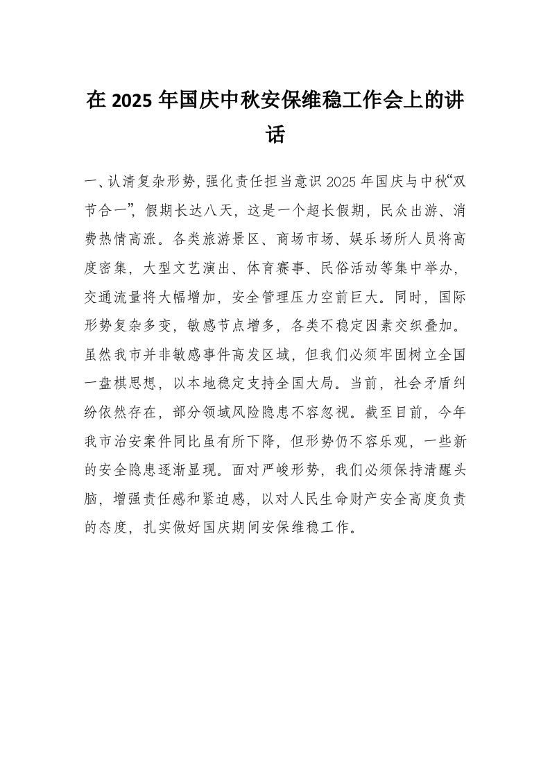 首页讲课讲稿在2025年国庆中秋安保维稳工作会上的讲话