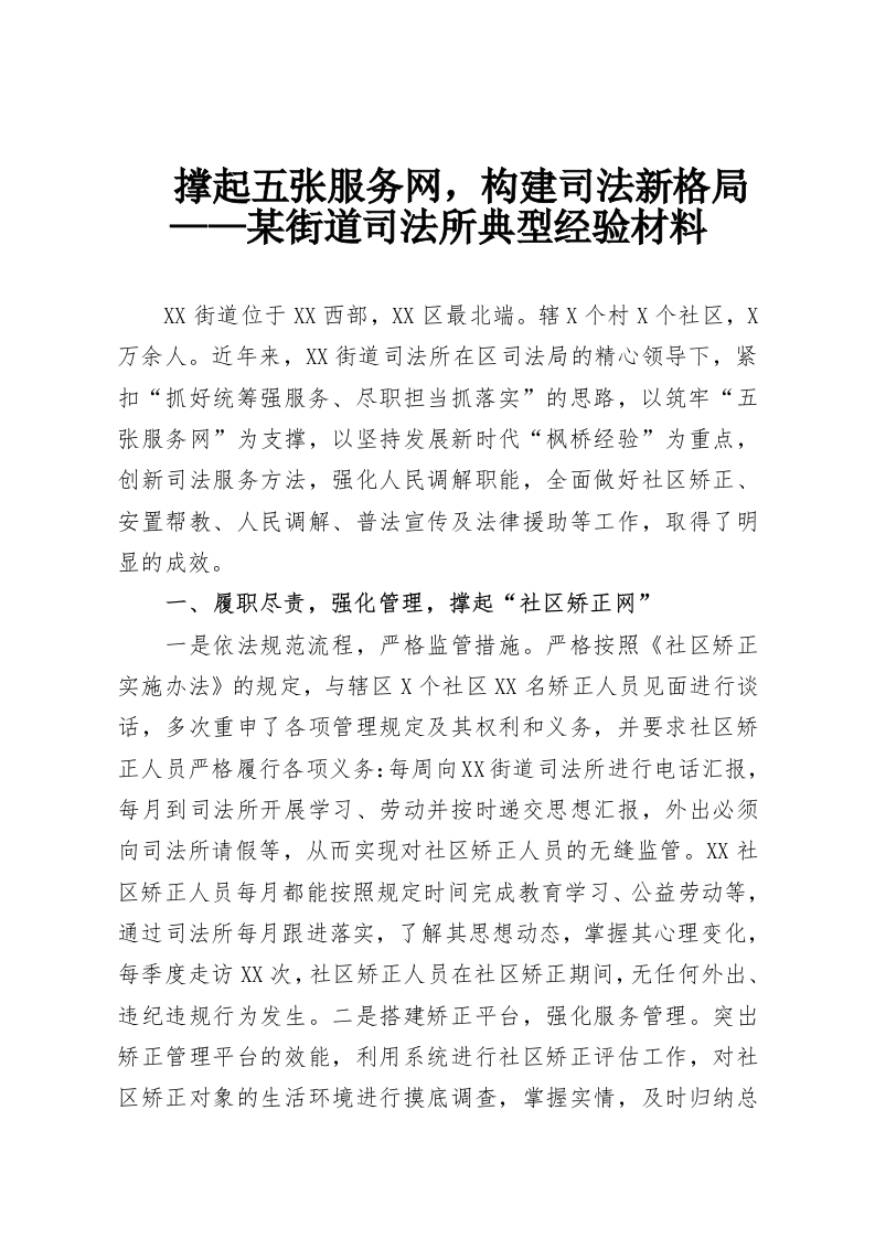 撑起五张服务网,构建司法新格局——某街道司法所典型经验材料