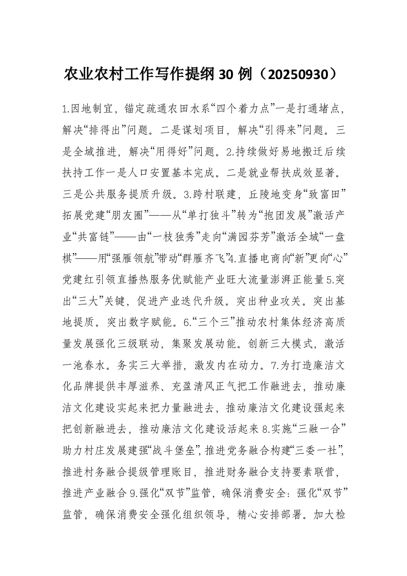 农业农村工作写作提纲30例(20250930)