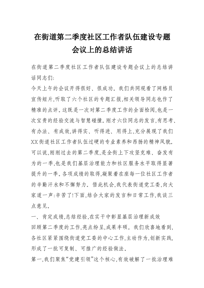 在街道第二季度社区工作者队伍建设专题会议上的总结讲话