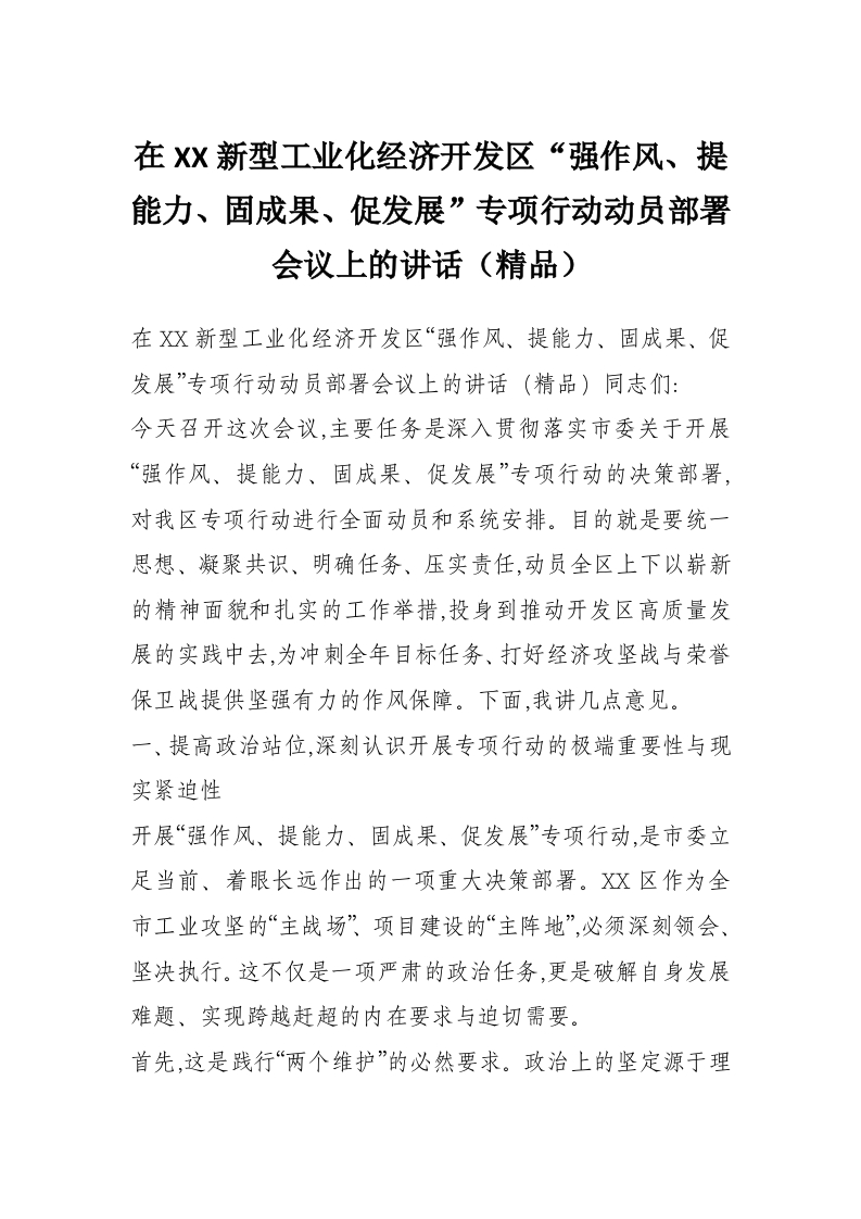 在XX新型工业化经济开发区“强作风、提能力、固成果、促发展”专项行动动员部署会议上的讲话(精品)
