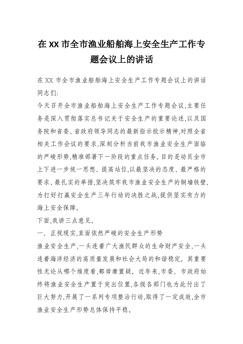 在XX市全市渔业船舶海上安全生产工作专题会议上的讲话
