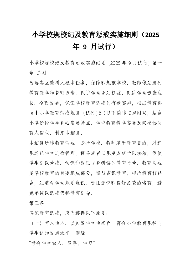 小学校规校纪及教育惩戒实施细则(2025 年 9 月试行)