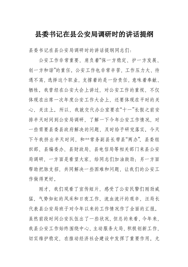 首页材料汇编县委书记在县公安局调研时的讲话提纲