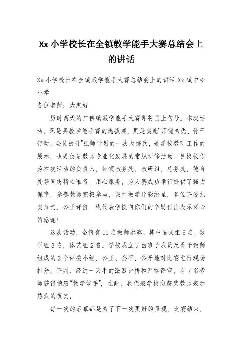 Xx小学校长在全镇教学能手大赛总结会上的讲话