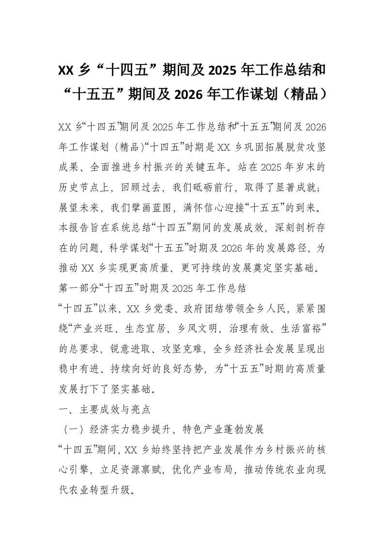 XX乡“十四五”期间及2025年工作总结和“十五五”期间及2026年工作谋划(精品)