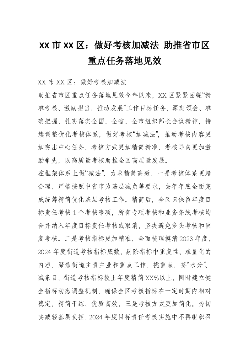 XX市XX区:做好考核加减法 助推省市区重点任务落地见效