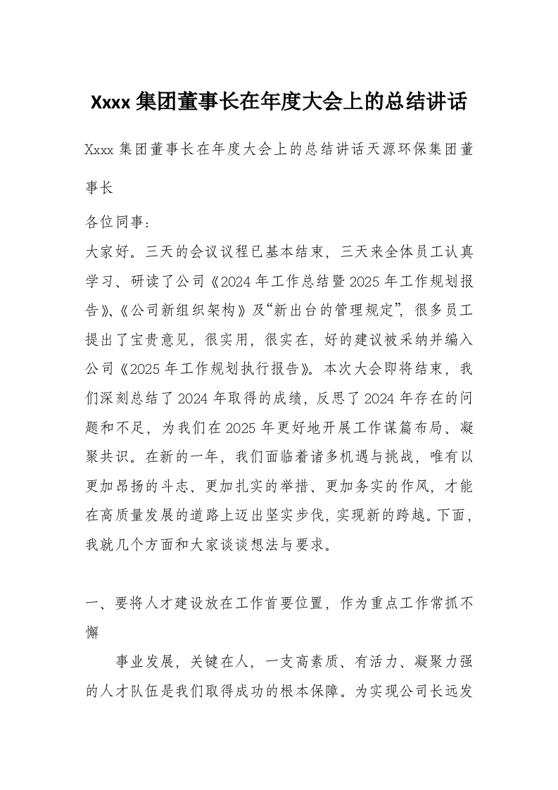 首页写作素材Xxxx集团董事长在年度大会上的总结讲话