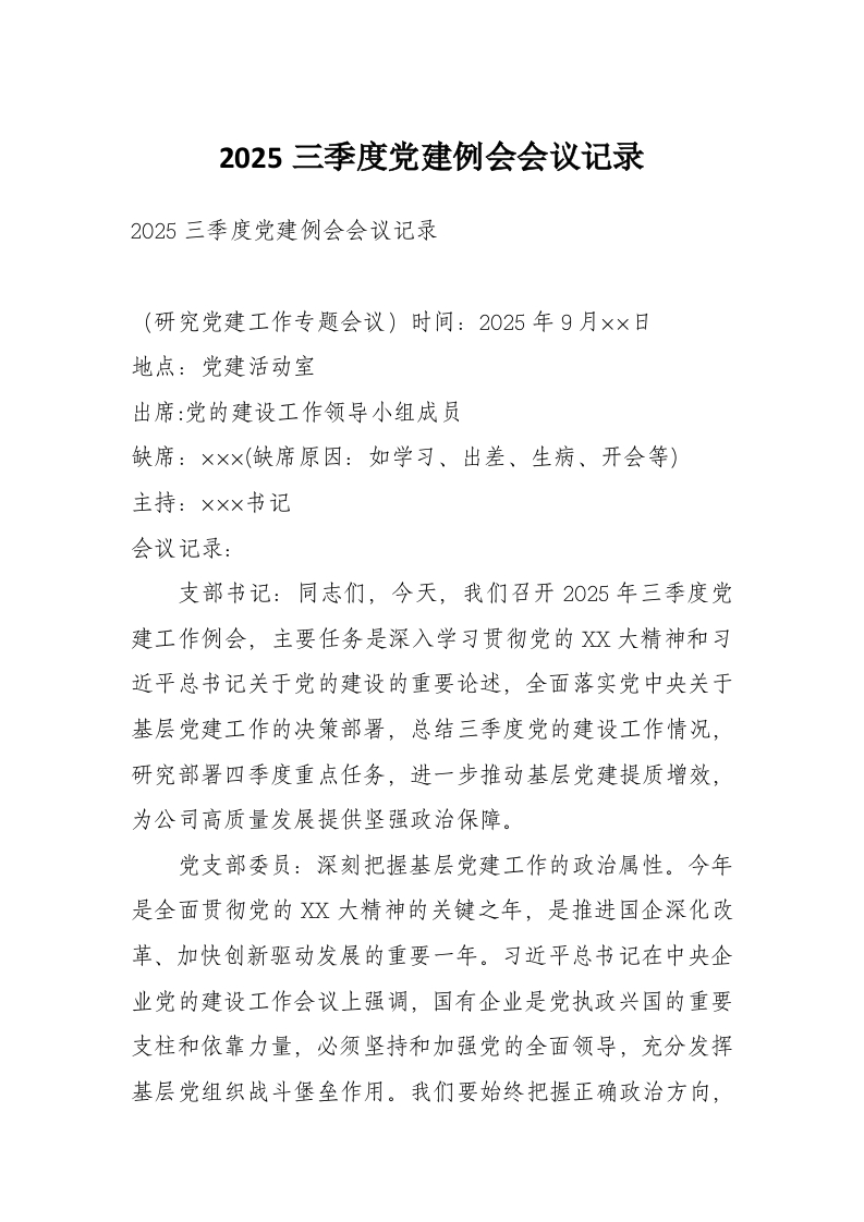 2025三季度党建例会会议记录