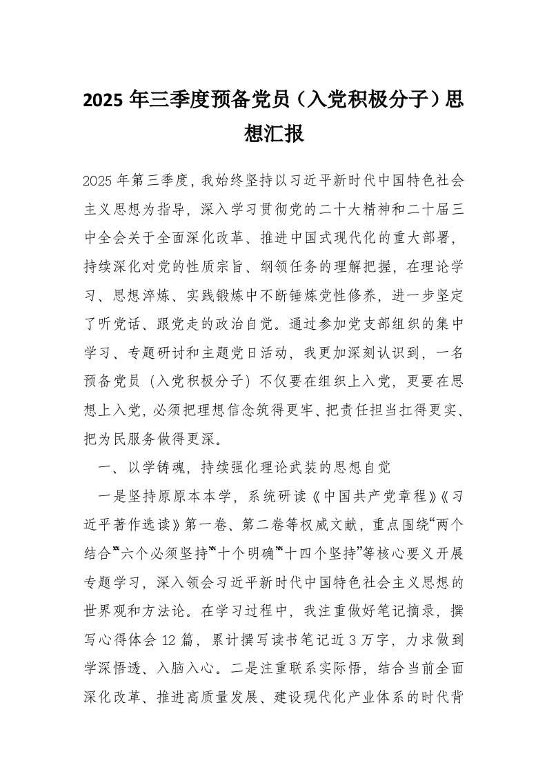 首页讲课讲稿2025年三季度预备党员(入党积极分子)思想汇报