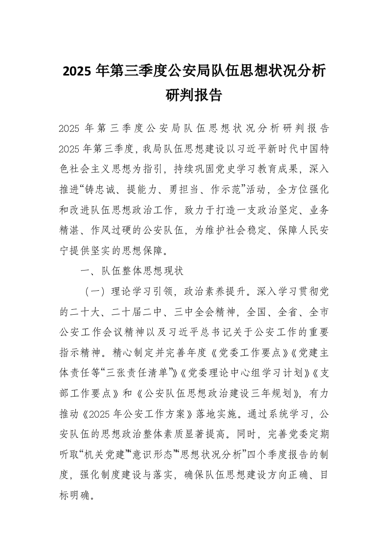 首页讲课讲稿2025年第三季度公安局队伍思想状况分析研判报告